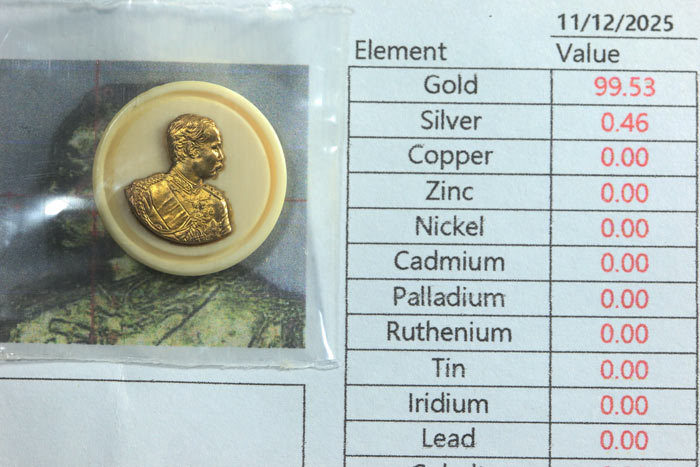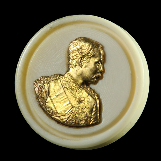 รายละเอียด เหรียญรัชกาลที่ 5 เนื้องาช้างแมมมอธ "หน้ากากทอง" "พิมพ์เล็ก"