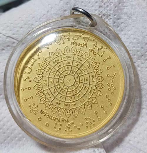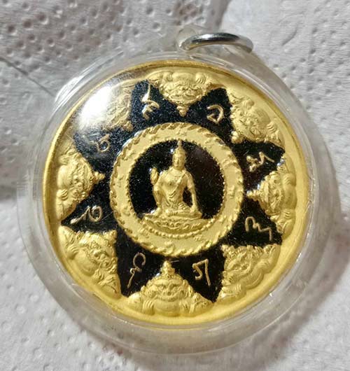 219.....................เหรียญ สรงน้ำ พลังแผ่นดิน 2550 งานจิวเวอรี่ ชุบทอง ลงยาดำ สวยเดิมๆ เลี่ยมกันน้ำพร้อมใช้