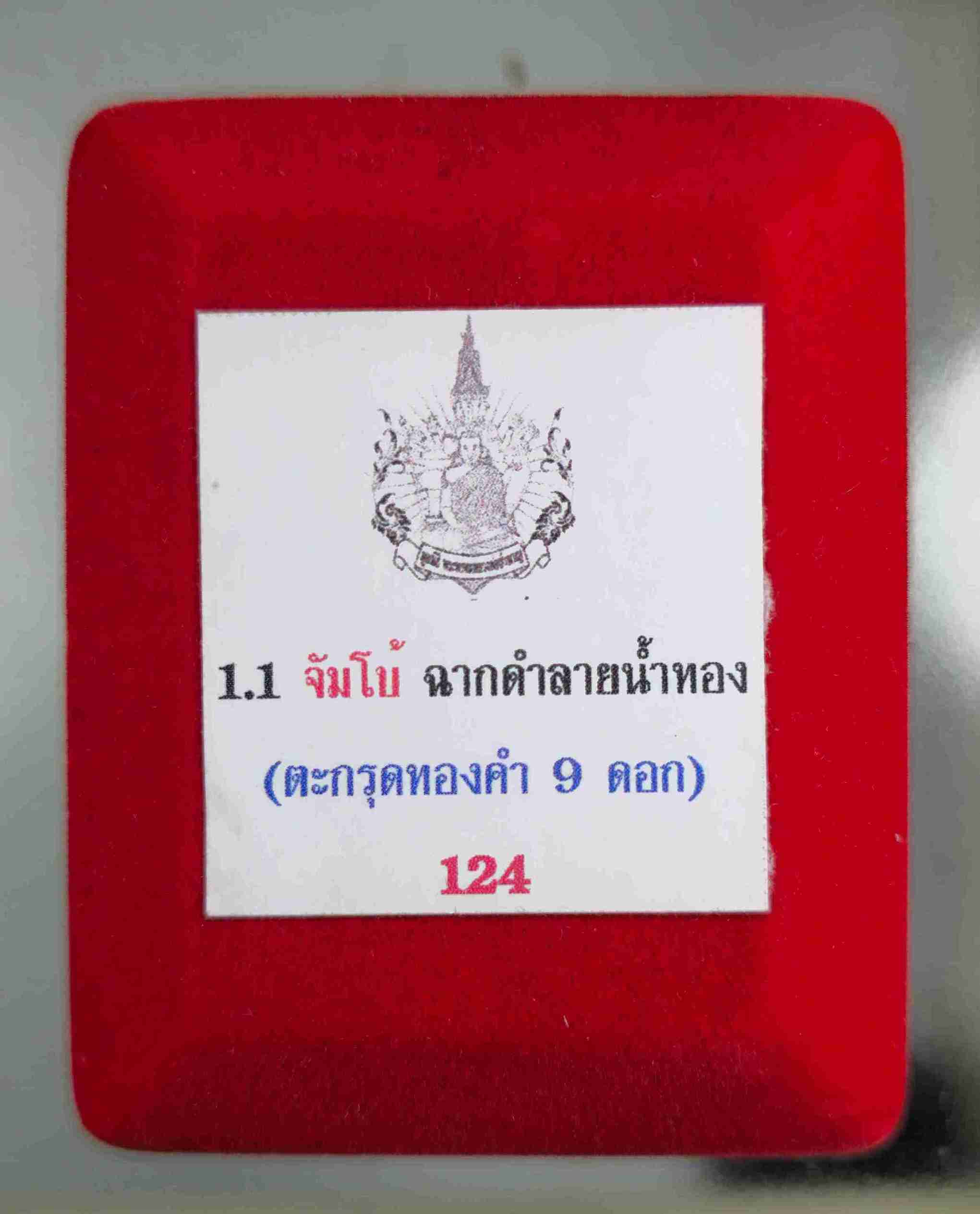 ฉากดำ-ลายน้ำทอง ตะกรุดทองคำ 9 ดอก สูง 4.5 ซม. หมายเลข 243 จำนวนการสร้าง 515 องค์