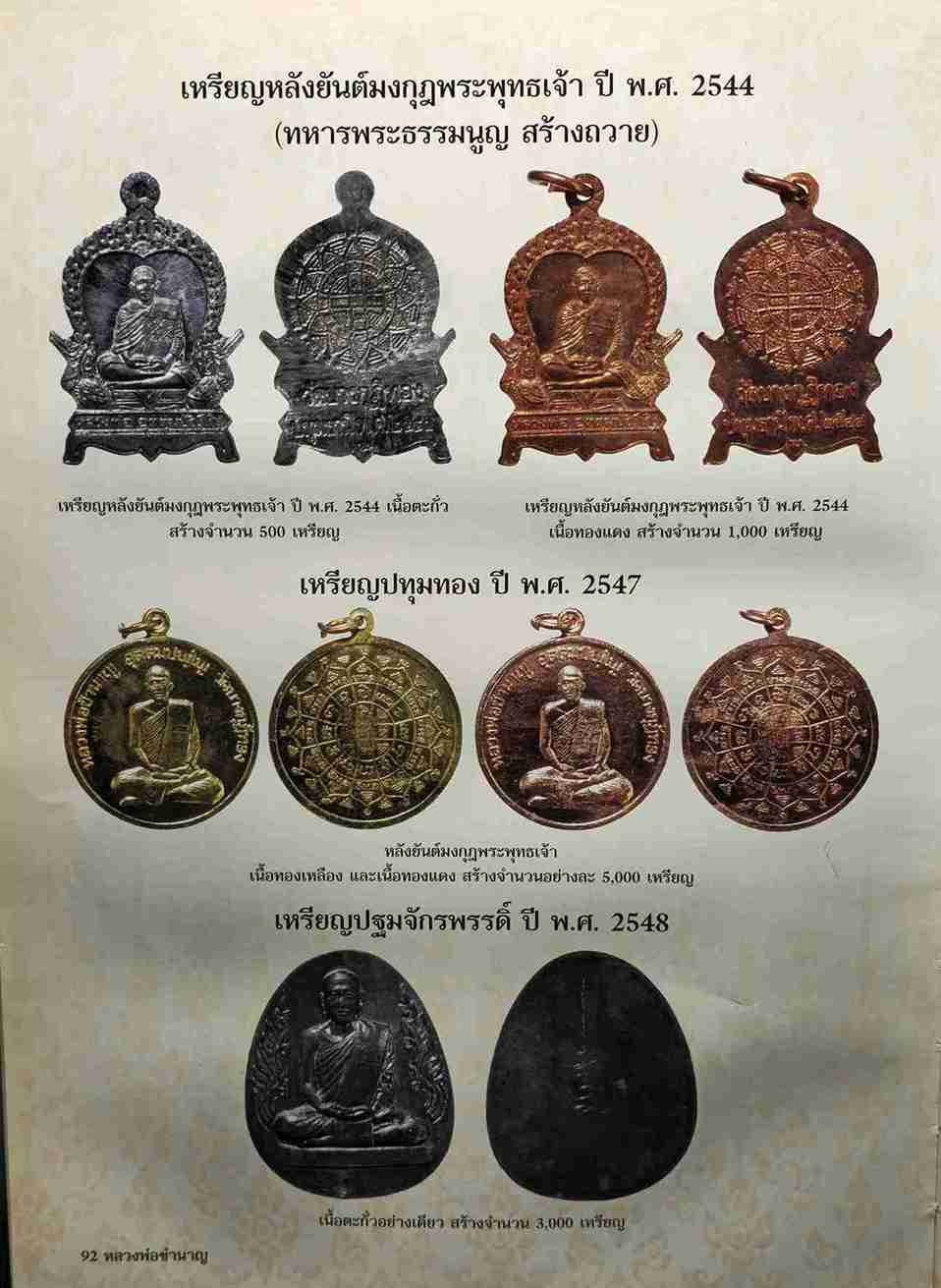 เหรียญปทุมทอง หลังยันต์มงกุฎพระพุทธเจ้า เนื้อทองแดง หลวงพ่อชำนาญ วัดบางกุฎีทอง ปี 2547 |