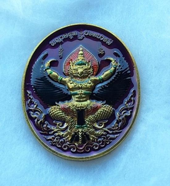 เหรียญพญาครุฑ หลวงปู่ศิลา วัดโพธิ์ศรีสะอาด รุ่นยอดบารมี ลังนำฤกษ์ เนื้อฝาบาตรโบราณ ลงยาทรงเครื่อง ลงยาปีกครุฑ พื้นม่วง No.53 |