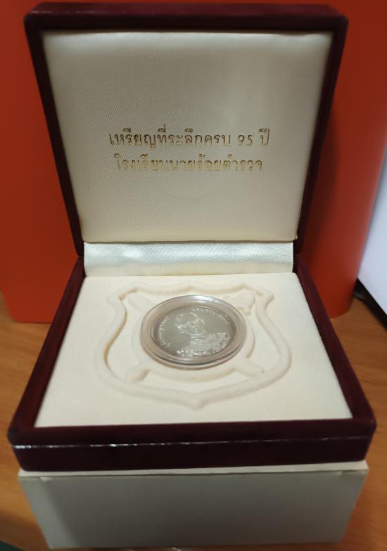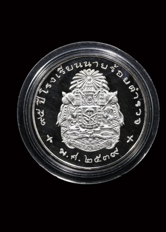 รายละเอียด เหรียญในหลวงร.9 ที่ระลึกครบ 95 ปี โรงเรียนนายร้อยตำรวจ ปี2539 ((( เนื้อเงิน ขัดเงา ))) เก่าเก็บ กล่องเดิม