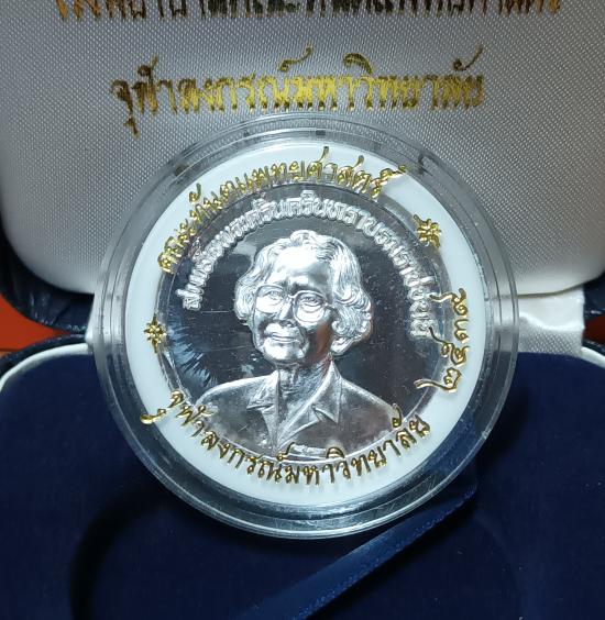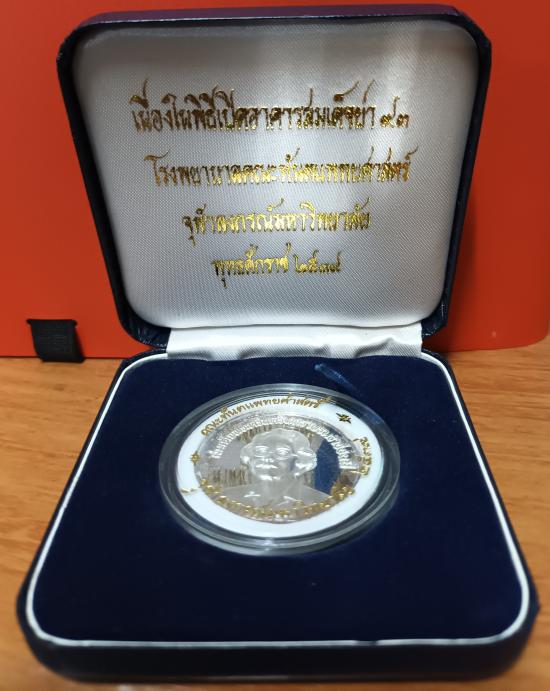 เหรียญสมเด็จย่า ที่ระลึกเปิดอาคารสมเด็จย่า93 โรงพยาบาลคณะทันตแพทย์ศาสตร์จุฬาฯ ปี2539 ((( เนื้อเงิน ขัดเงา ))) ขนาดราวๆ 3.2 ซม. หายาก สวยเดิมๆ ตลับเดิม กล่องเดิม