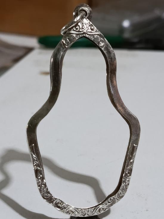 กรอบเงินแท้ สั่งตัดใส่เศียรพ่อแก่ทั่วไป หลวงปู่กาหลง ขนาดกรอบนอก 4 ซม.สูง 6.3 ซม.หัวสิงห์ใหญ่หนาหนัก 6.10 กรัม สวยครับ |