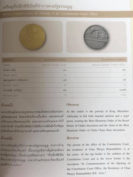 รายละเอียด เหรียญในหลวงร.9 ที่ระลึกพิธีเปิดที่ทำการศาลรัฐธรรมนูญ ปี2543 ((( เนื้อเงิน รมดำพ่นทรายพิเศษ มีโค้ต Ag ))) ขนาด 3.5 ซม. ผลิตน้อย 1255 เหรียญ เก่าเก็บ กล่องเดิม