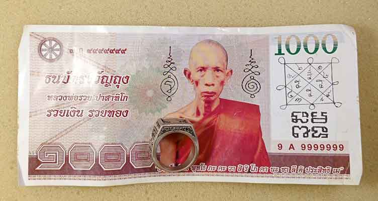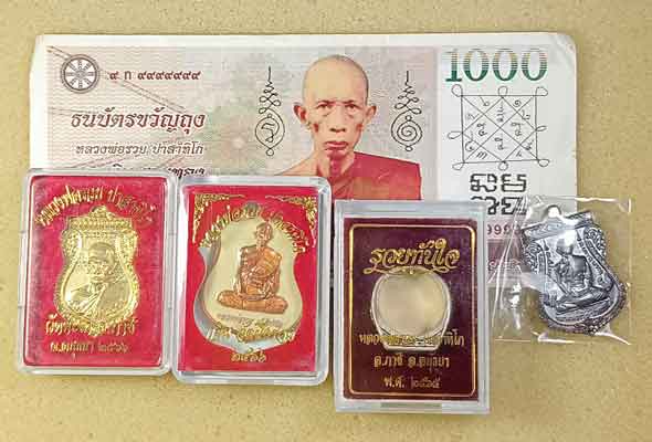 เหรียญ 3 เหรียญ + แหวน อัลปาก้า รุ่นรวยทันใจ ปี 65 ออกวัดผึ้งรวง + ธนบัตร ขวัญถุง หลวงพ่อรวย วัดตะโก อยุธยา |