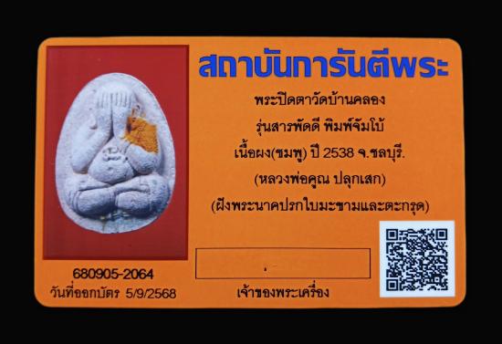 5. 11 ก.พ. 2539 เข้าพิธีพุทธาภิเษกอีกครั้ง ณ วัดบ้านคลอง โดยมีคณาจารย์โดยมีนามอันเป็นมงคล 9 รูป ได้แก่