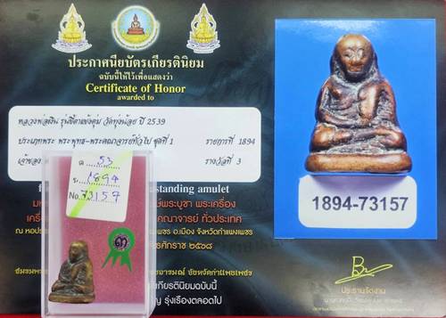รูปหล่อ หลวงพ่อเงิน พิมพ์ขี้ตาแข้งตุ่ม วัดทุ่งน้อย ปี2539 ติดรางวัลที่3