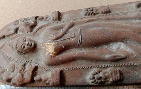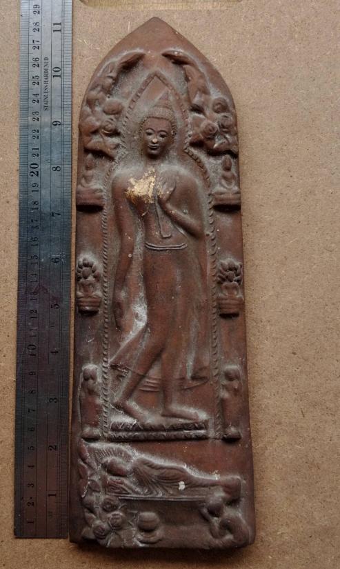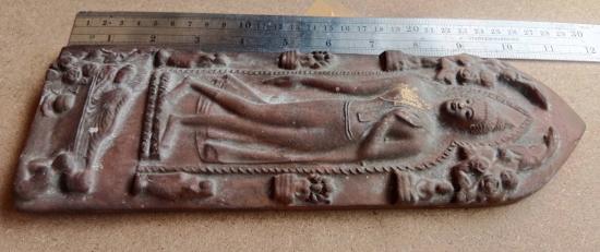 พระกำแพงศอก เนื้อดินเผา พิมพ์ปางปรินิพพาน ขนาดกว้าง 4 นิ้ว ยาว 11 นิ้ว ตามรูป