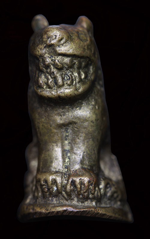 ชื่อพระเครื่อง เสือหล่อโบราณ เนื้อทองเหลือง ใต้ฐานตอกโค๊ด เก่าๆ ไม่ทราบที่ ไม่รู้ข้อมูลการสร้าง