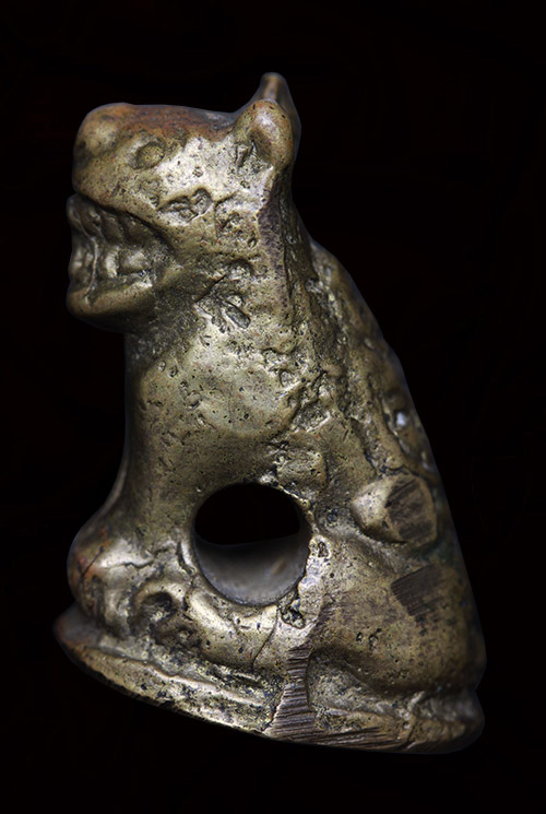 รายละเอียด เสือหล่อโบราณ เนื้อทองเหลือง ใต้ฐานตอกโค๊ด เก่าๆ ไม่ทราบที่ ไม่รู้ข้อมูลการสร้าง