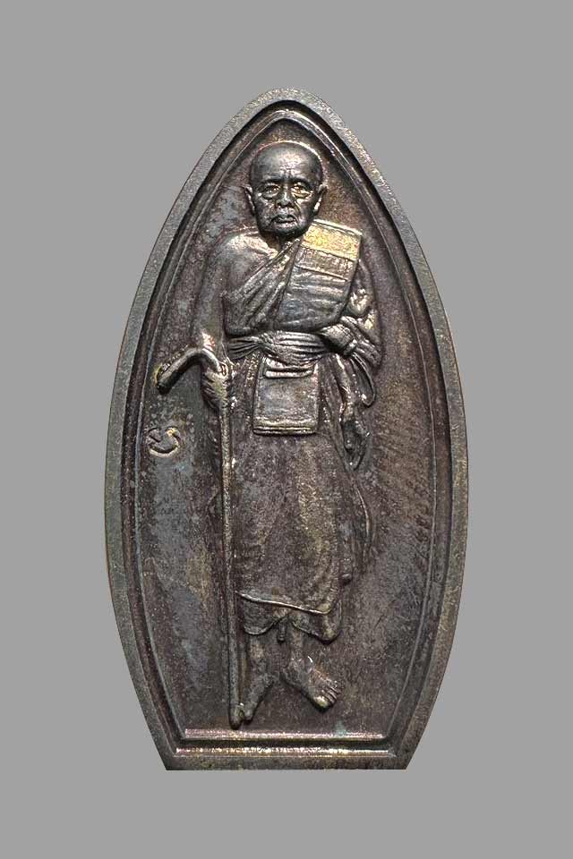 เหรียญยืนถือไม้เท้าหลวงพ่อปลื้ม วัดสวนหงส์ อำเภอบางปลาม้า จังหวัดสุพรรณบุรี สร้างปี 2542