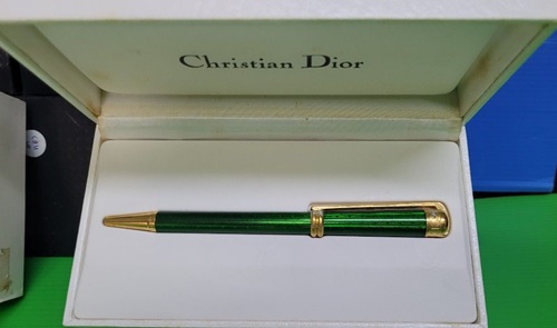 ปากกา Christian Dior (คริสเตียน ดิออร์) ปากกาลูกลื่น มือสอง สีเขียวปีกแมลงทับ สวยมาก ครบชุด