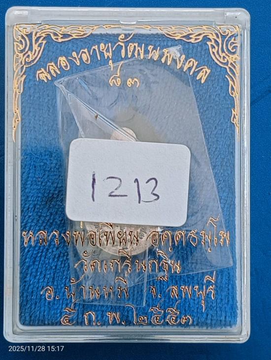 หลวงพ่อเพี้ยน เหรียญเม็ดแตง เนื้อเงิน รุ่นอายุวัฒนมงค 83 ปี หลวงพ่อเพี้ยน วัดเกริ่นกฐิน ลพบุรี กล่องเดิม หมายเลข 1213 |