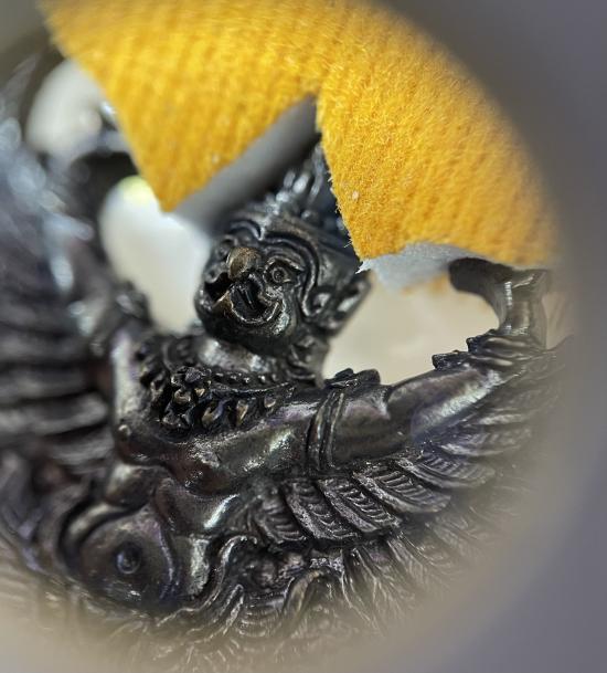 พญาครุฑมหาอำนาจ รุ่นสมปราถนา หลวงปู่โสฬส วัดโคกอู่ทอง เนื้อทองแดงรมดำ ตอกโค้ด หมายเลข 3222 สภาพสวย |