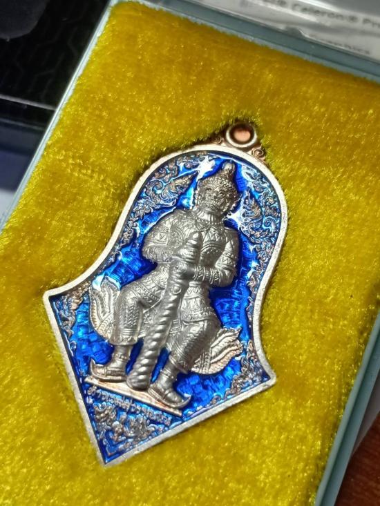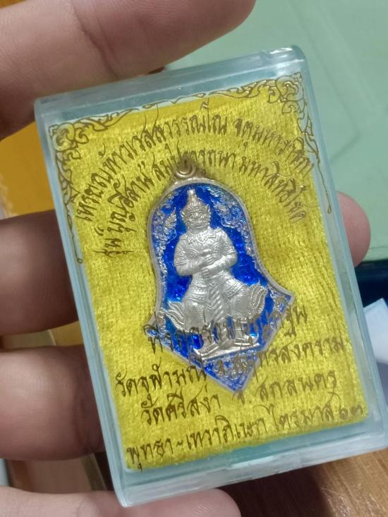 เหรียญท้าวเวสสุวรรณเนื้อเงิน ลงยาสีน้ำเงิน พิมพ์จำปี บุญอีสาน หลวงพ่ออิฏฐ์ วัดจุฬามณี ปี 2563 กล่องเดิมครบ