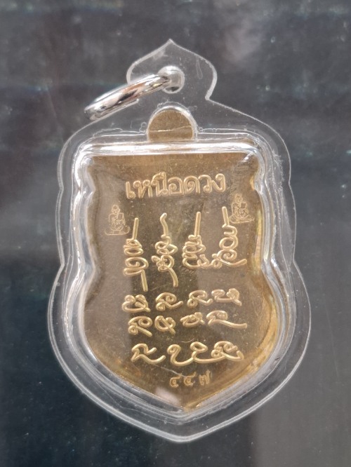 เหรียญพระราหูอมจันทร์ หลวงปู่ศิลา เมตตาอธิษฐานจิต รุ่นเหนือดวง เนื้อทองเหลืองลงยา เลี่ยมกรอบ #1