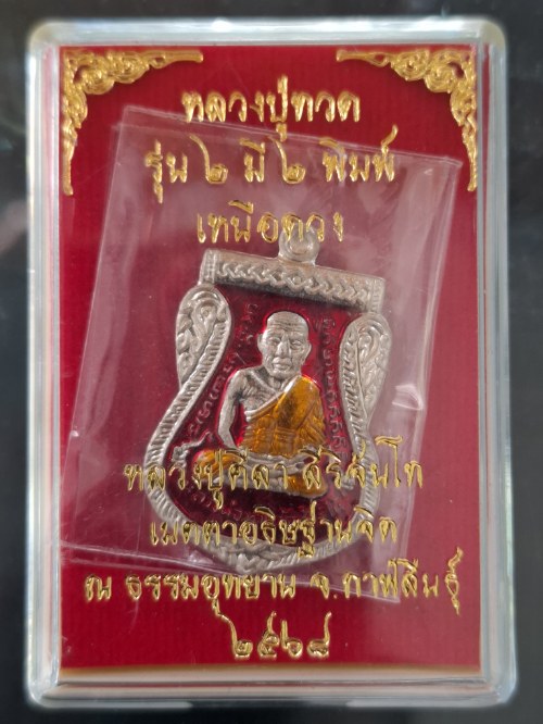 เหรียญหลวงปู่ทวด พิมพ์หน้าเลื่อน รุ่นเหนือดวง เนื้ออัลปาก้าลงยาแดง หลวงปู่ศิลา อธิษฐานจิต พระใหม่สร้างปี 68 |