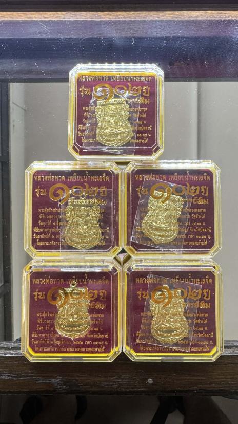 ** 5 องค์ ** เหรียญหลวงปู่ทวดหลังอาจารย์ทิม รุ่น 102 ปี พิมพ์เสมา เนื้อทองเคนอก 102 ปี อาจารย์ทิม พร้อมกล่อง ไม่แกะซีน