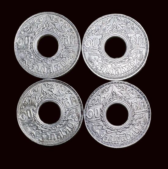 รายละเอียด 4เหรียญ เหรียญเงินรู ปี 2484 ราคา 10 สต. ลายบัวกนกแข้งสิงห์ เนื้อเงิน