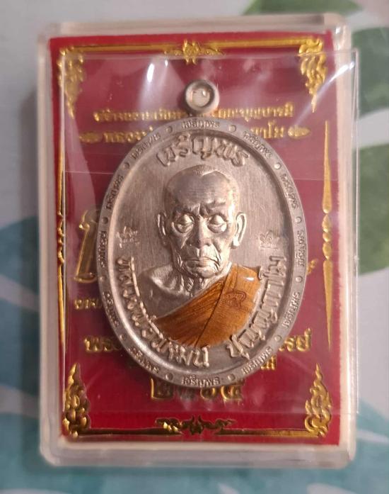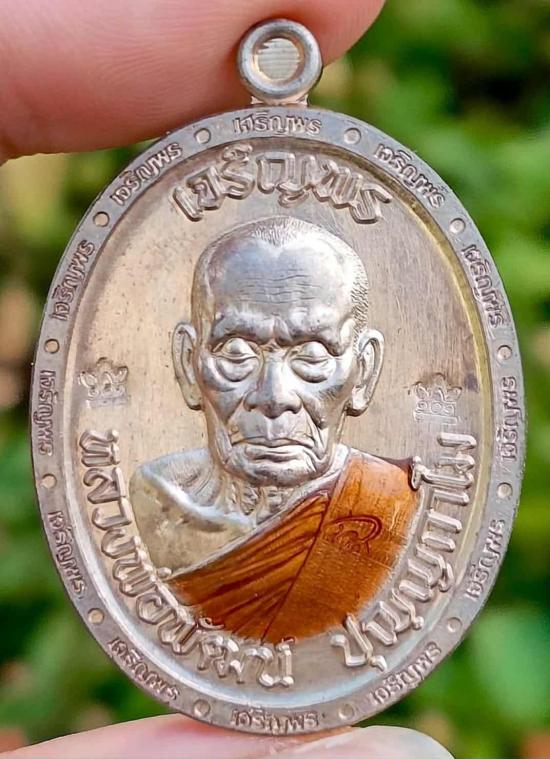เหรียญเจริญพรบน 65 ขอบเจริญพร หลวงพ่อพัฒน์ ปุญฺญกาโม เนื้อทองแดงพรายเงินลงยาจีวร เลข ๕๗ สวยๆ กล่องเดิม