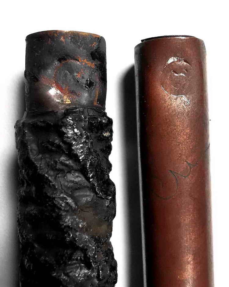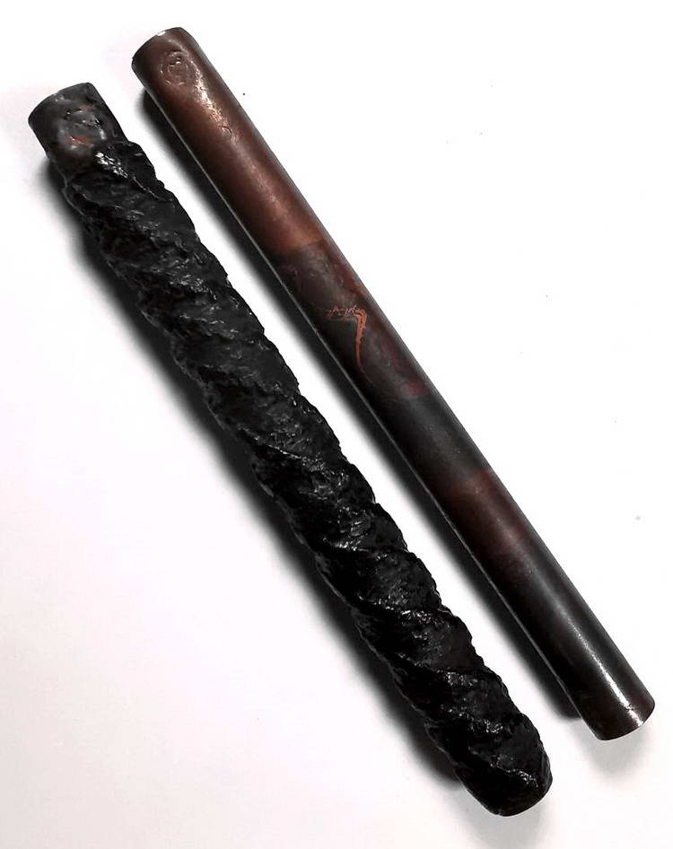( เคาะเดียว 2ดอก ) ตะกรุด 2ดอก เปลือย + ลงรัก ตะกรุดโทนมหาอำนาจ โค๊ดนะกลับ ขนาด 4นิ้ว หลวงปู่ทิม วัดละหารไร่ ปลุกเสก ออกวัดไผ่ล้อม ปี 2513 |