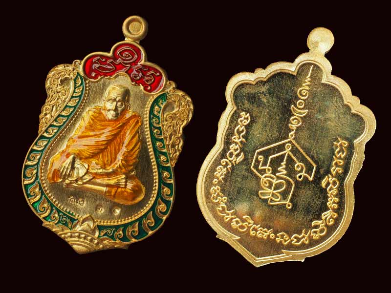 เหรียญเสมา รุ่นบูชาครู ลพ.กันภัย วัดดอนศาลา ปี 62 เนื้อทองฝาบาตร ลงยา#34 จ.พัทลุง