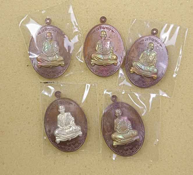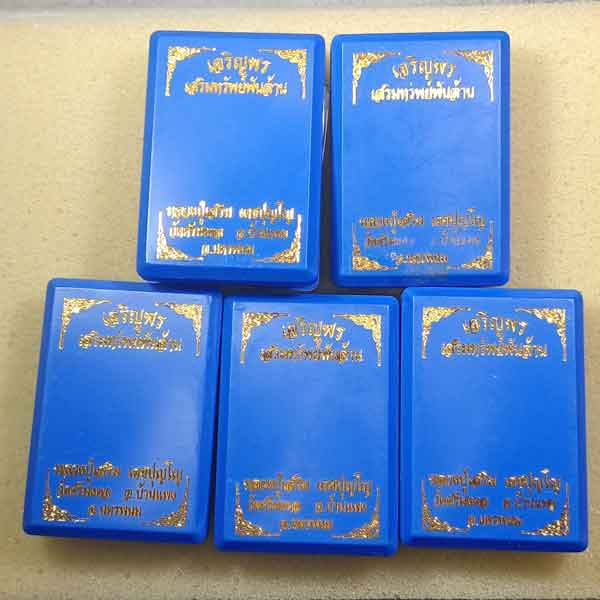 เหรียญเจริญพร รุ่น เสริมทรัพย์พันล้าน หลวงปู่เสริม เตชปุญโญ อายุ 100 ปี วัดศรีมงคล จ.นครพนม 5 เหรียญ กล่องเดิม