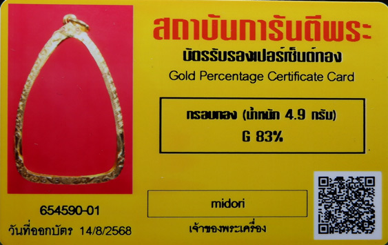 กรอบทองคำแท้ เดิมใส่พระกรุบ้านกร่าง มงคลใหญ่ หรือเกจิคณาจารย์ทั่วไป น้ำหนัก 4.9กรัม G.83% + บัตรรับรอง GPRA |