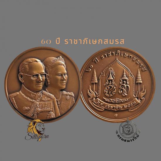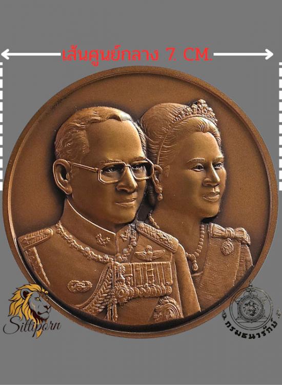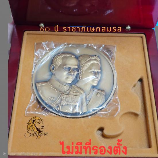 รายละเอียด เหรียญที่ระลึกครบ 60 ปี ราชาภิเษกสมรส พ.ศ.2553 เนื้อทองแดงรมดำ ขนาด 7 ซม. พร้อมกล่อง (ไม่มีขารองตั้ง)สภาพunc ครับ ในซีนเดิม