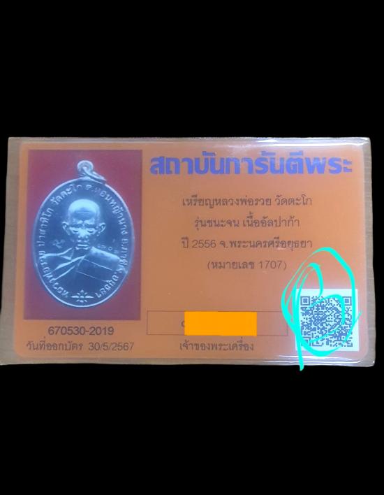 หลวงพ่อรวย รุ่นชนะจนปี56 เนื้ออัลปาก้า สวยๆพร้อมบัตรg มีกล่องเดิม