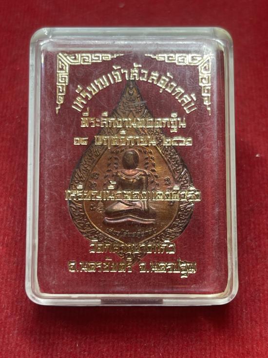 เหรียญเจ้าสัวสดุ้งกลับ หลวงพ่อสัญญา วัดกลางบางแก้ว ที่ระลึกกฐิน 2561 เนื้อทองแดงผิวรุ้ง พิมพ์เศียรโล้นสะดุ้งกลับ ตอกโค๊ต เลข6771 นอนกล่อง