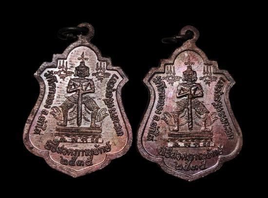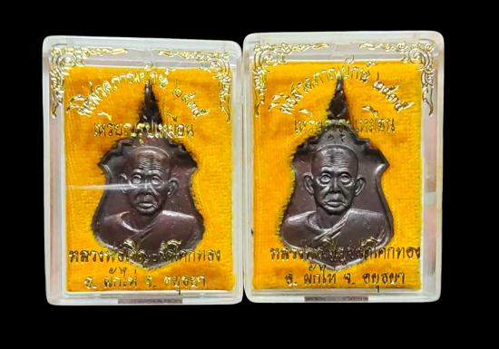 พระรูปเหมือนปั๊ม โบราณ รุ่นแรก หลวงพ่อเชิญ วัดโคกทอง เนื้อทองฝาบาตร พร้อมกล่องเดิม ปี 2535( จำนวน 2องค์ )