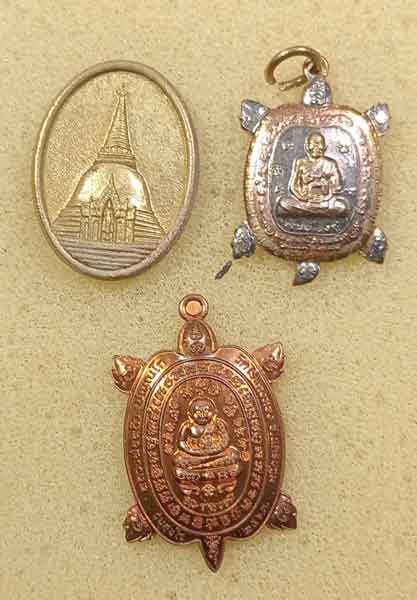 เหรียญหล่อ ครบ150 ปี สร้างองค์พระปฐมเจดีย์ จ.นครปฐม ปี 46 + เหรียญพญาเต่าเรือน รุ่น เงินเฟืองฟู ปี 58 + รุ่น สุขใจ 63