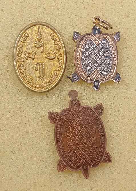 ชื่อพระเครื่อง เหรียญหล่อ ครบ150 ปี สร้างองค์พระปฐมเจดีย์ จ.นครปฐม ปี 46 + เหรียญพญาเต่าเรือน รุ่น เงินเฟืองฟู ปี 58 + รุ่น สุขใจ 63