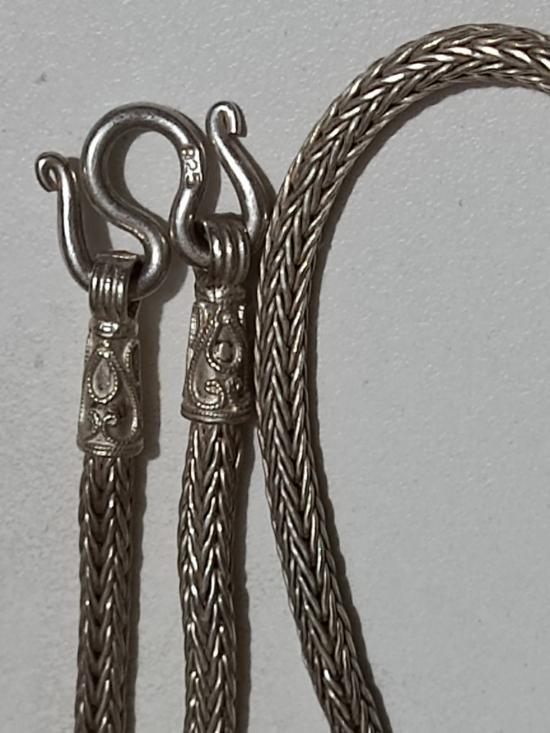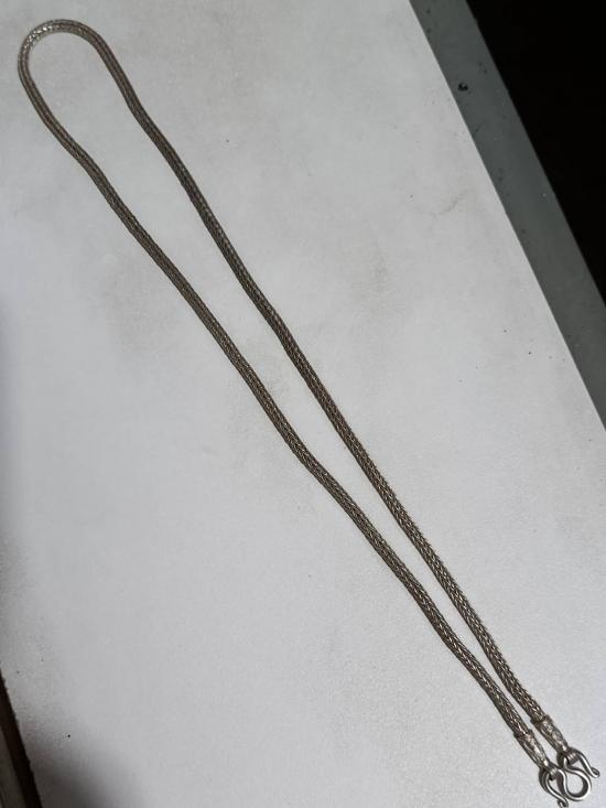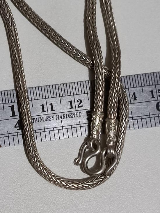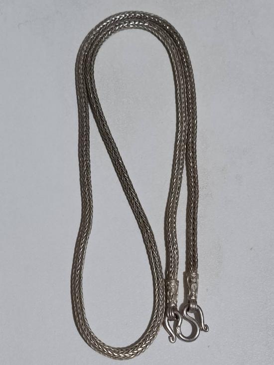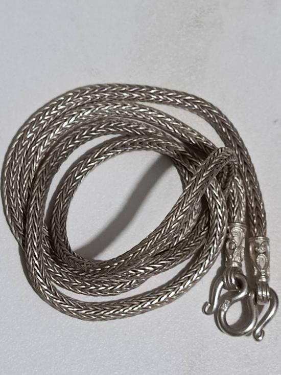 รายละเอียด สร้อยเงินแท้ 925 ลายหกเส้า โต 4 มม.ยาวเกือบ 24 นิ้ว หนัก 27.76 กรัม สมบูรณ์ตอก 925 สวยสมบูรณ์