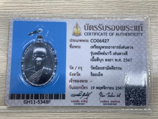 วัดน้อยสามัคคีธรรม สร้างน้อย รุ่นเด่นดวงดี จารเต็มหน้าหลังลายมือพระอาจารย์เด่นดวง พร้อมบัตรรับรองสมาคม