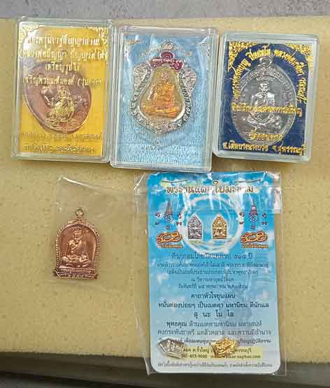 เหรียญลพ.ปัญญา วัดกกกว้าว นครสวรรค์ +เหรียญลป.เล็ก วัดทำนบ อ่างทอง+เหรียญลป.ศุข ย้อนยุค+เหรียญลพ.สมบุญ วัดดอนตาล +ขุนแผนใบมะขาม วัดแค สุพรรณบุรี 2 องค์