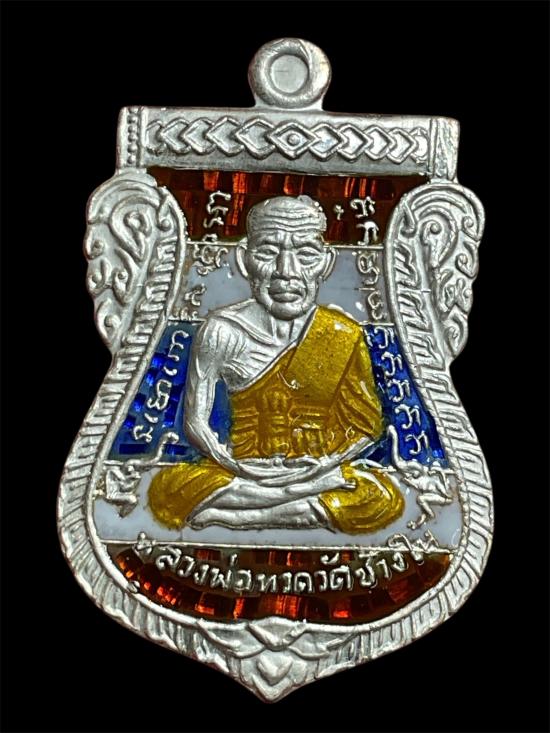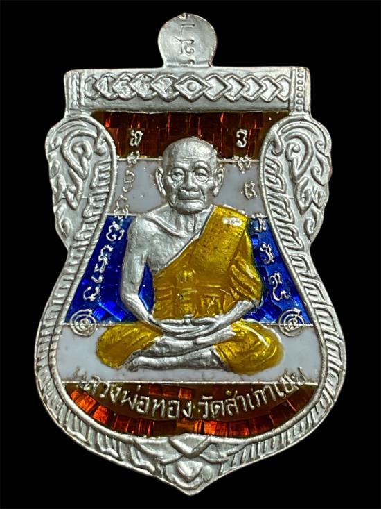 : เหรียญหลวงพ่อทวด-หลวงพ่อทองพิมพ์เสมาหน้าเลื่อน2หน้าเนื้อเงินลงยาสีธงชาติ รุ่นเซยิปเด.ทอง วัดสำเภาเชย (ปิด1000)