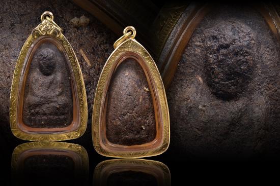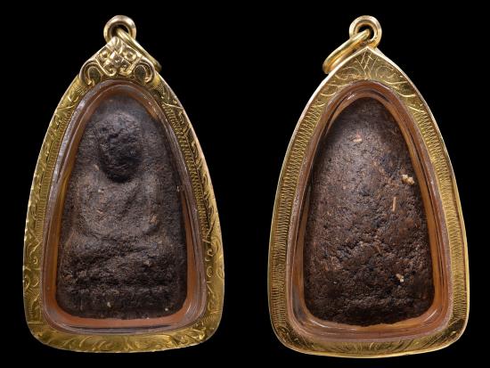 พระเนื้อว่านหลวงพ่อทวด พิมพ์ตุ๊กตาเล็ก วัดบางนอน จ.ระนอง ปี05 เลี่ยมทองคำ รับประกันแท้ครับ