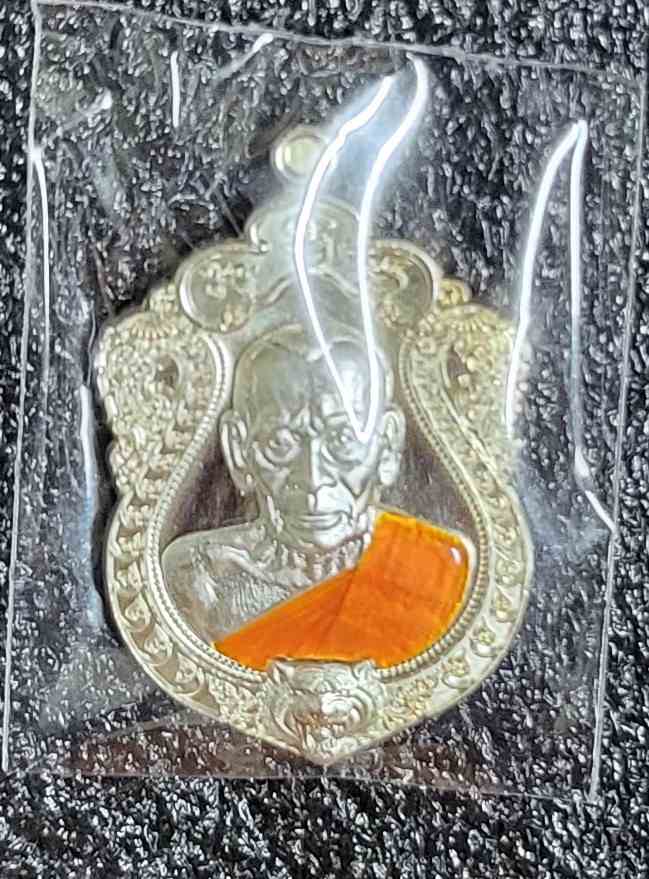 เคาะเดียวแดง เหรียญหลวงพ่อพัฒน์ รุ่นไตรมาส 63 พิมพ์เสมาคาบแก้ว เนื้อพราย เงินลงยาจีวร |