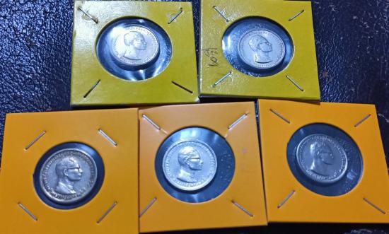 เหรียญ ร9 เงิน 10บาท ครองราชย์ครบ25ปี รวม5เหรียญ