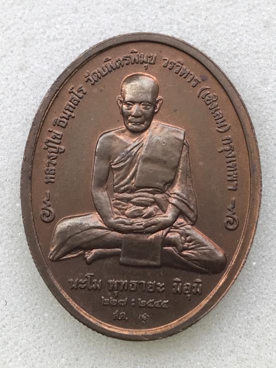 เหรียญบล็อกกษาปณ์ หลวงปู่ไข่หลังพระพุทธอรหังกลีบบัว วัดเชิงเลน วัดบพิตรพิมุข กรุงเทพฯ ปี2545 ขอบสตางค์ฟันเฟือง พระสวยเดิม