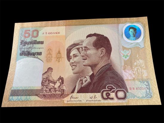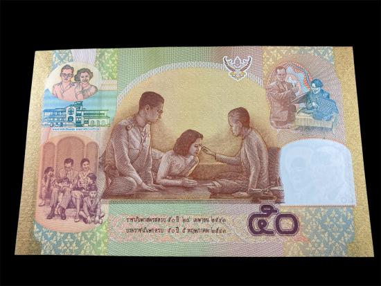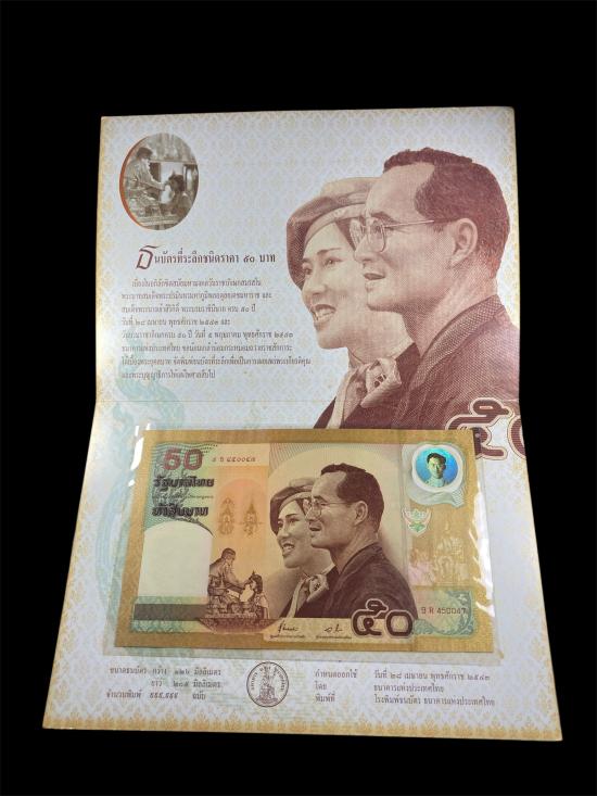 รายการี่ 1 ธนบัตรที่ระลึกชนิดราคา 50 บาท เนื่องในอภิลักขิตสมัยมหามงคลวันราชาภิเษกสมรส ครบ 50 ปี 28 เมษายน 2543 และวันบรมราชาภิเษกครบ 50 ปี 5 พฤษภาคม 2543 สวยๆ ครับ