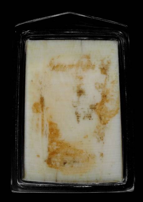 นางกวักงาแกะเก่าไม่ทราบที่ ขนาดกว้าง 1.5 ซม. ยาว 3.5 ซม. |