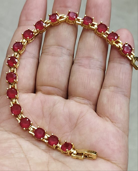 เทขาดทุน+ +เทปีใหม่++กำไลข้อมือทับทิมยาว 7.นิ้ว งานจิวเวลลี่ชุบทองแท้ |
