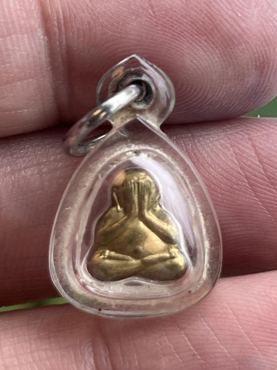 พระปิดตาหลังรูปเหมือนก๋งเตื่อง เตชปัญโญ เนื้อทองทิมพ์ รุ่นสร้างบารมีสองแผ่นดิน วัดคลองม่วง