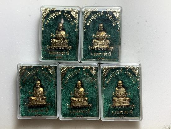 รูปหล่อพิมพ์นั่งอุ้มบาตร หลวงปู่บุญมี วัดสระประสานสุข จ อุบลราชธา นี รุ่น สัมฤทธิ์โช ค สัมฤทธิ์เดช ปี 2543 พร้อมกล่อง เคาะเดียว 5 องค์