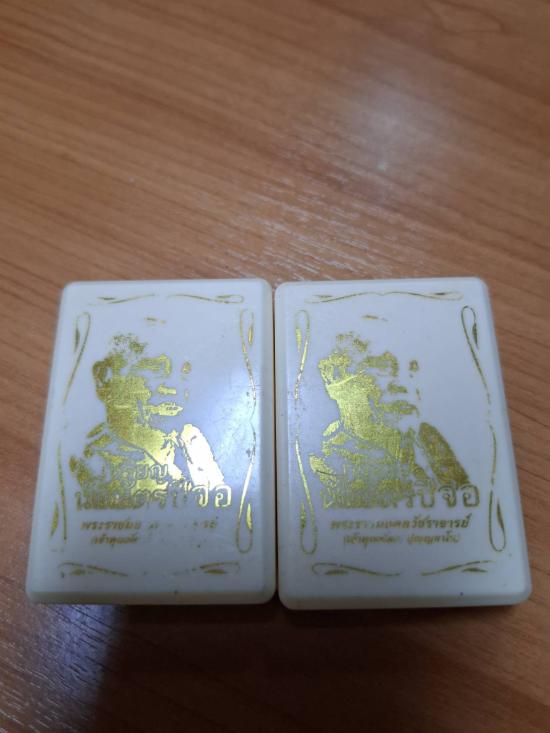 เหรียญนักษัตรปีจอ คู่ 2 เหรียญ เนื้อทองทิพย์ ลงยา 2 สี หมายเลข 826 + เนื้อกะไหล่เงิน ลงยาจีวร หมายเลข 12 หลวงพ่อพัฒน์ วัดห้วยด้วน จ.นครสวรรค์