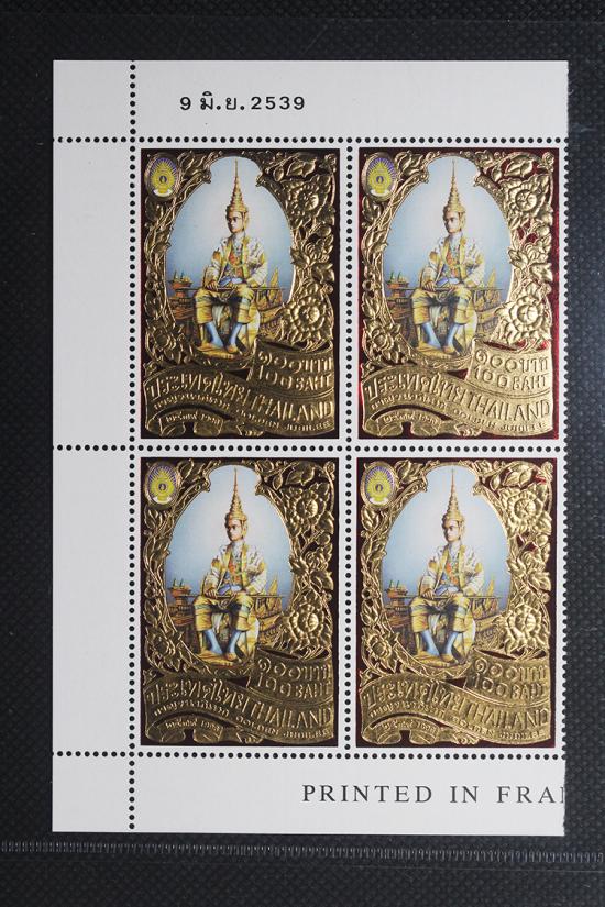 รายละเอียด แสตมป์ทองคำพิมพ์ดุนนูน ออกเนื่องในวโรกาศในหลวง ร.9 ปีกาญจนาภิเษก เคาะเดียวครับแดงราคาหน้าดวง 400 บาท